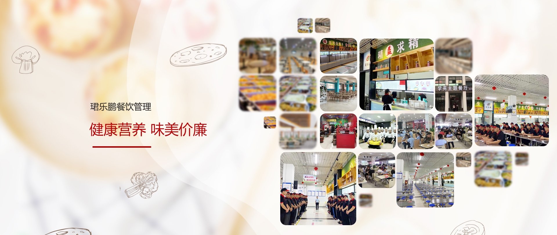 威?,B樂鵬餐飲管理有限公司,是一家面向全國的餐飲管理服務機構,專注學校、醫院、企事業單位的食堂承包與托管,涵蓋膳食管理、食堂規劃咨詢、設計的專業餐飲公司, 在餐飲行業中有著全新的經營理念和多年的實踐經驗,重點推行五常管理及4D管理模式。公司始終堅持“以食品安全求生存,以服務質量求發展”,全面深化改革,持續優化整合資源,自成立公司之日起, 公司以“做好專業食堂承包為服務宗旨,以提高各服務單位用餐質量為已任”,營養合理搭配為企業原則,堅持“健康營養、味美價廉”的八字方針
